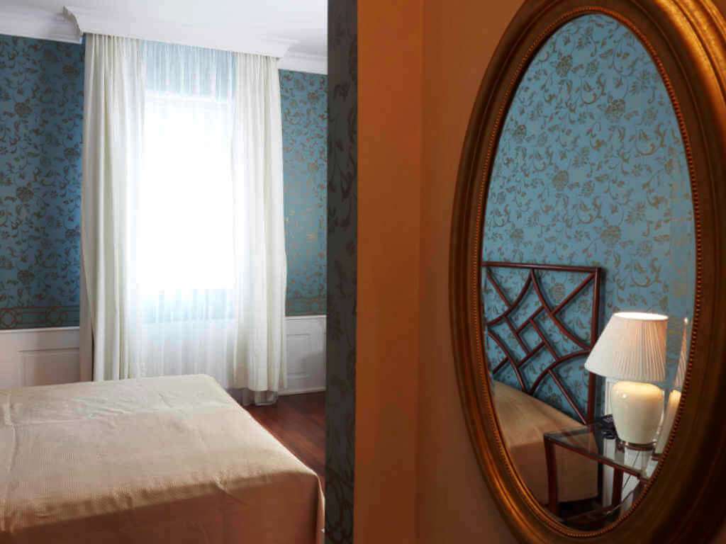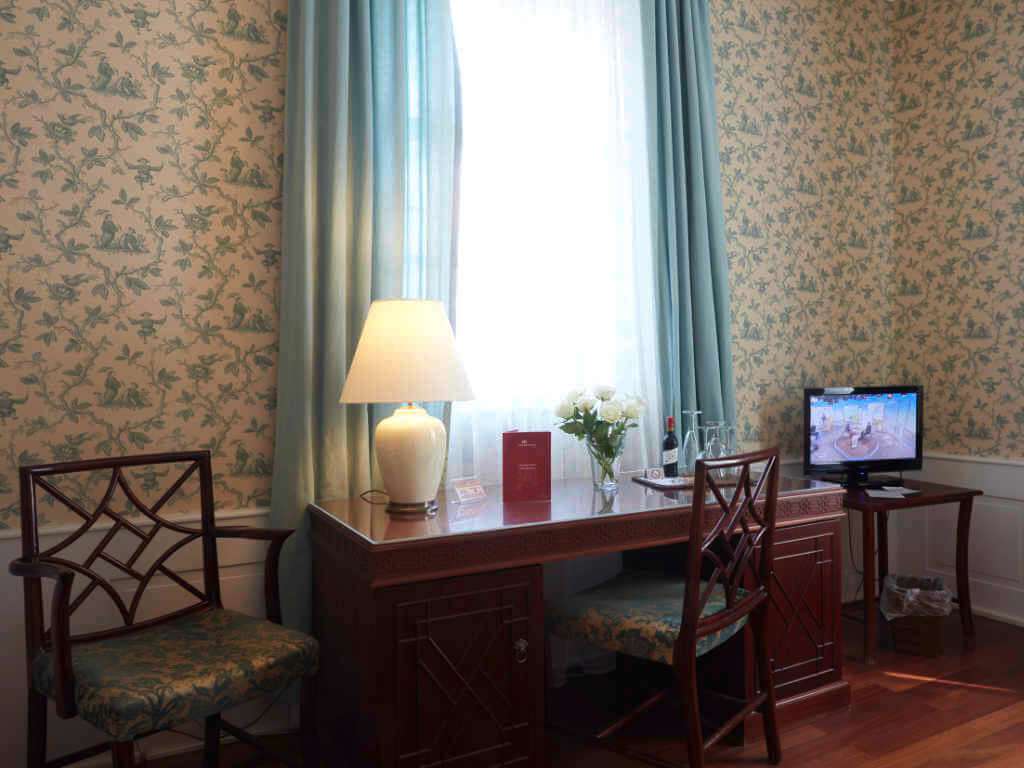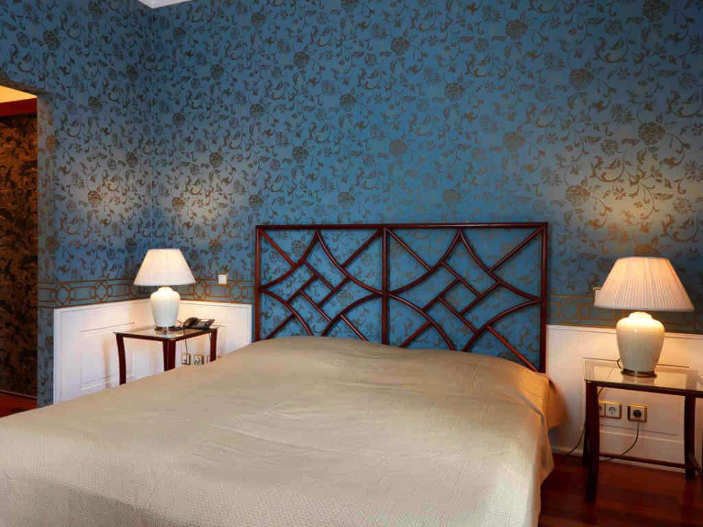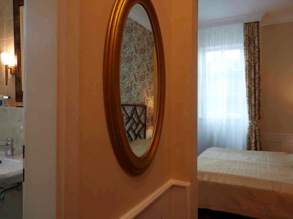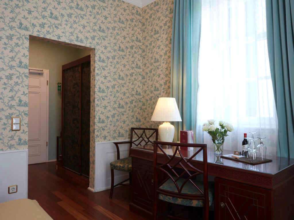 Mögen Sie diese besondere Mischung europäischen Komforts mit asiatischen Stilelementen? Dann wird Sie unser Pagodenzimmer gefangen nehmen. Die türkis-goldene Wandgestaltung des Schlafraums und das eigens handgefertigte Mahagoni-Mobiliar schaffen eine besondere Atmosphäre, die Ihren Aufenthalt zum Erlebnis werden läßt.