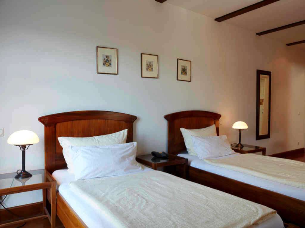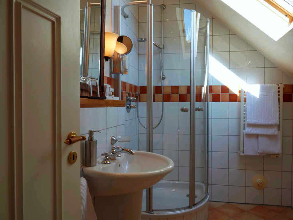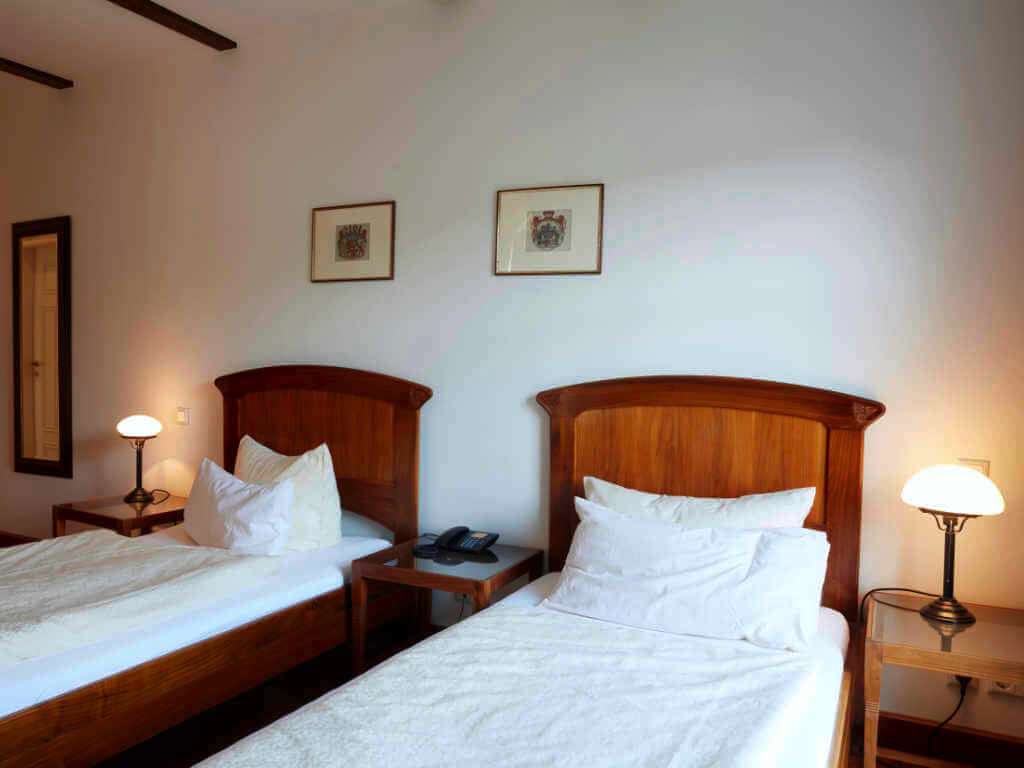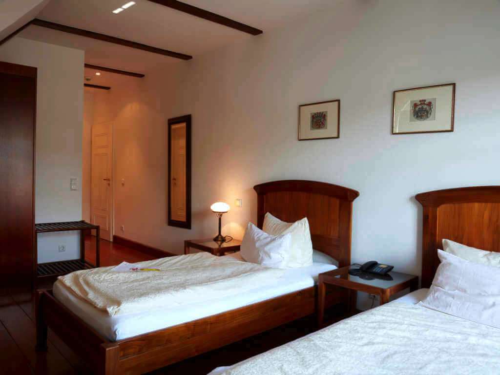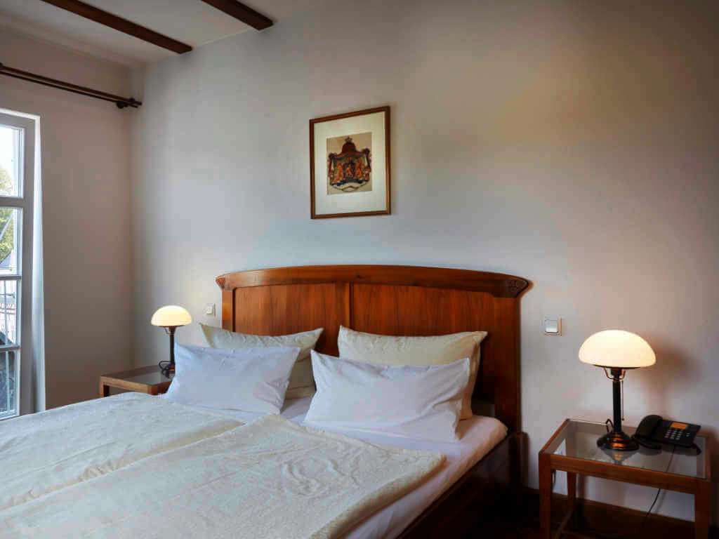 The four hotelrooms on the top floor, featuring coats of arms in historical colours, are reminiscent of the old noble families of the area. Unlike all other rooms in our hotel, these rooms display the rural style in which local houses were furnished in the early 1900s: Restrained elegance in a comfortable atmosphere.